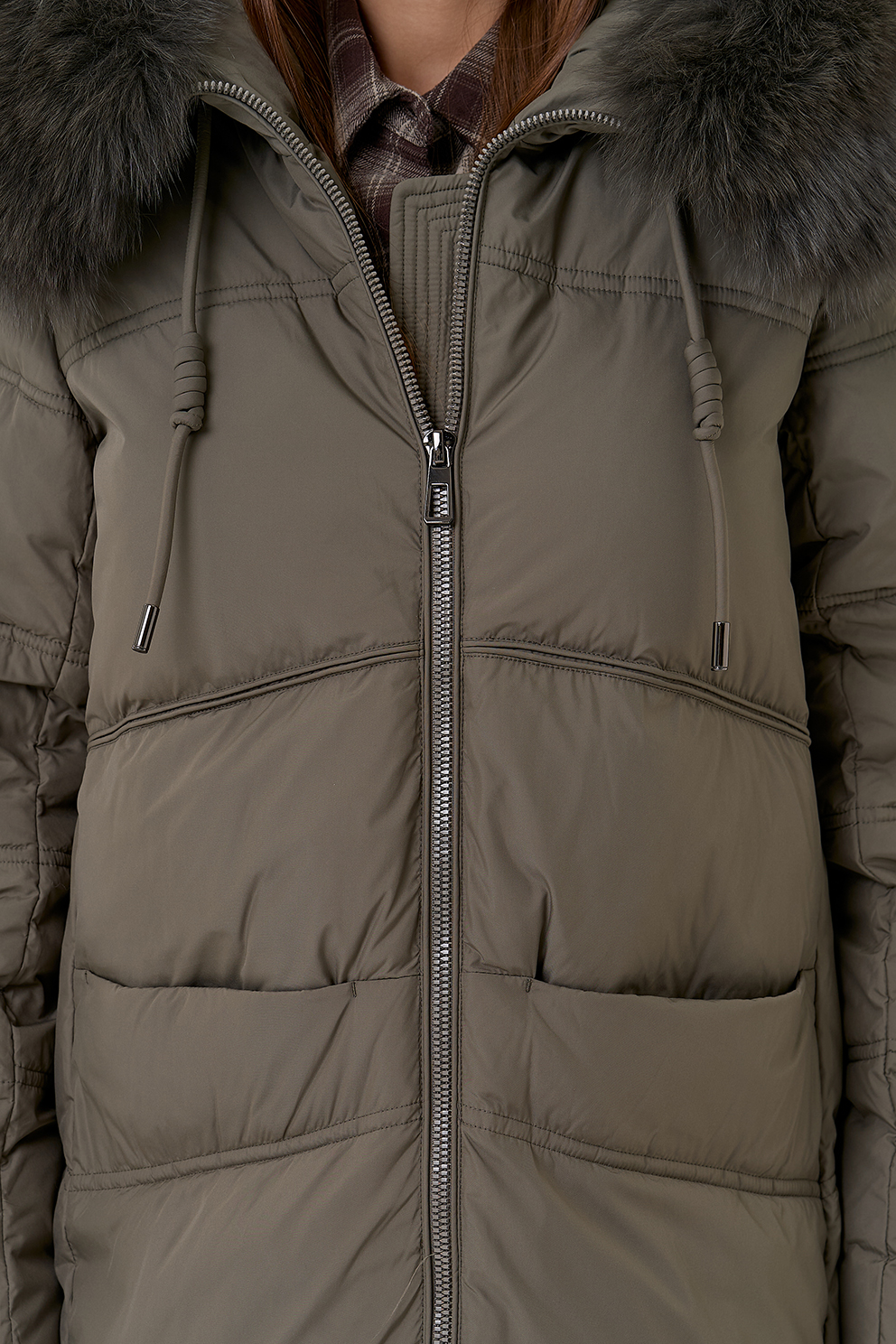 Крой воротника - капюшон, отделка песец