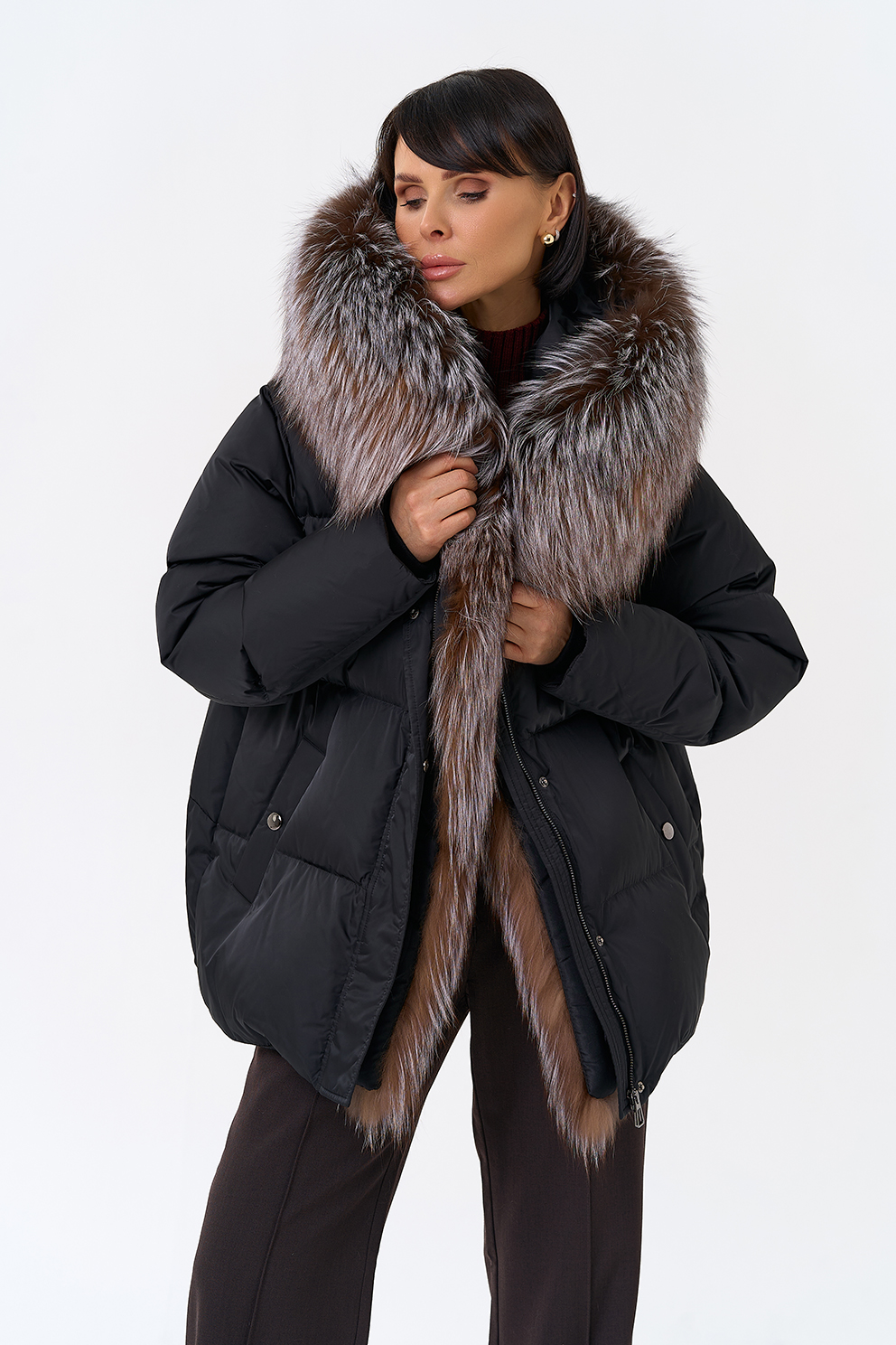 Крой воротника - капюшон, отделка блюфрост